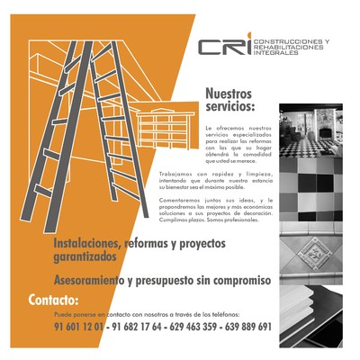CRP dispone de un servicio integral CRi, solo con una llamada dispondrá de todos los profesionales que necesita para la realización de su proyecto.